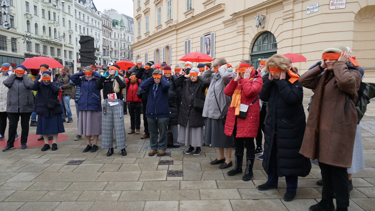 Wien, 15. November 2025 – Rund vierzig Aktivistinnen und Aktivisten der Initiative Stopp Sexkauf Österreich – unterstützt von lightup, SOLWODI-Österreich, dem Verein feministischer Diskurs, HOPE FOR THE FUTURE, der Europäischen Gesellschaft für Geschlechtergerechtigkeit Österreich (EGGö), HeVio – Health and Violence und TERRE DES FEMMES Österreich – ein starkes Zeichen.